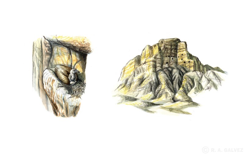 Griffon Vulture Nesting Site January 16, 2014 1040 × 662 Vultures of the Caucasus Thumbnails included in a behavior/habitat spread in “Raptors and Owls of Georgia.” A colony of Griffons nesting in semi-desert mountain caves. The nest is often no more than twigs and branches lining a ledge.
