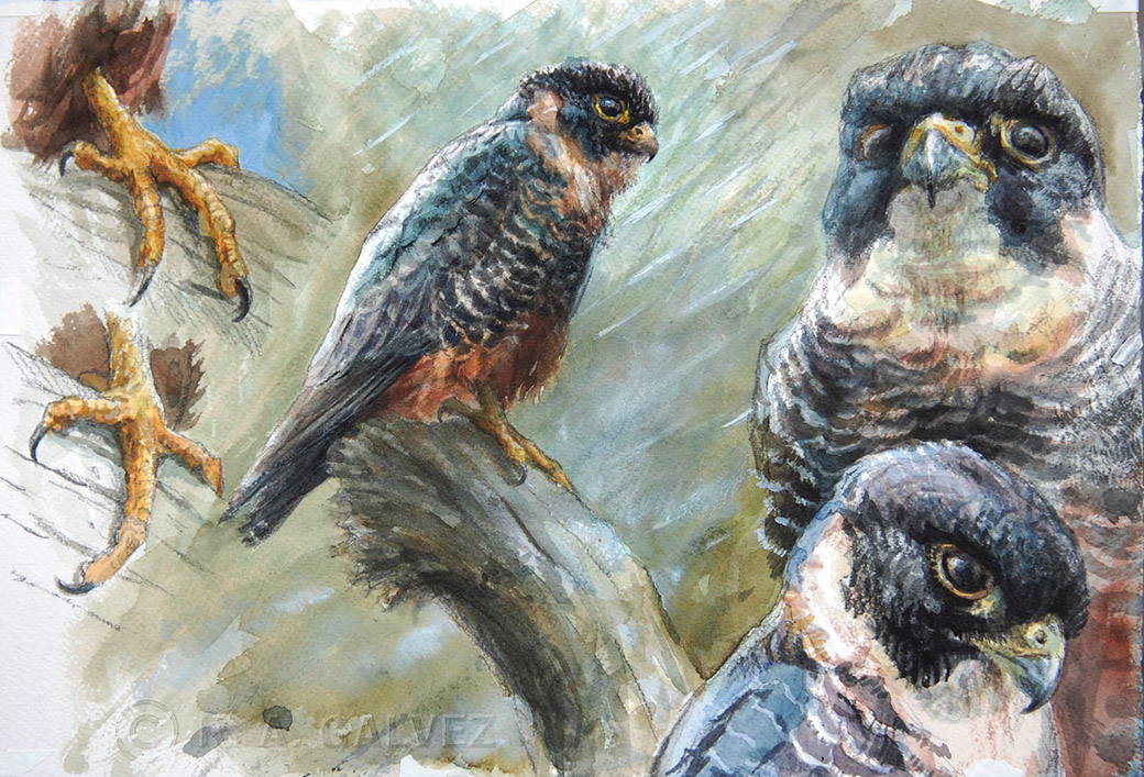 - Bat Falcon – various postures and talon details: Most of the watercolor was done on site. Details were added later.